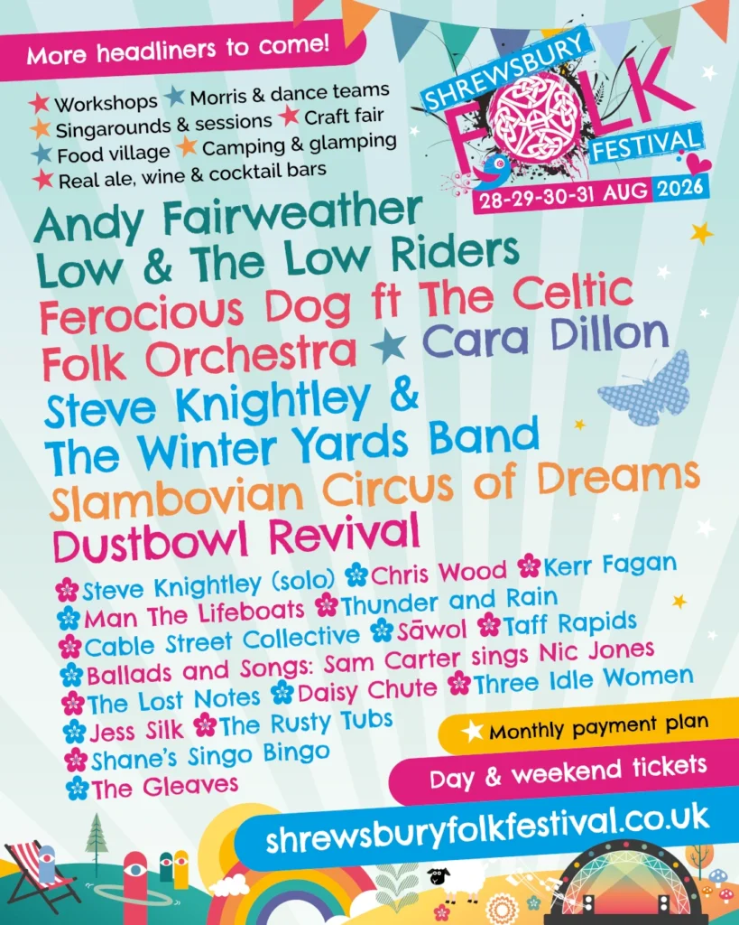For more information and to book visit shrewsburyfolkfestival.co.uk